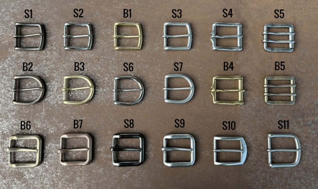 You can choose from several different heavy duty buckles for your new gun belt. Click on the image below to for a better look. The “S” buckles are silver and the “B” buckles are brass. If you have your own buckle you want to use, please let me know.